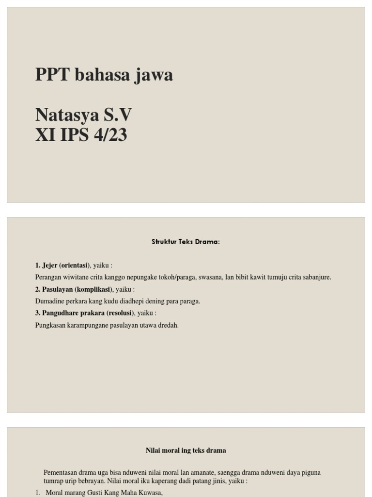 Terbaru translate bahasa jawa krama alus. Struktur teks drama tradisional, yen kapilah ing bagan, kaya ing ngisor iki. Bantuan gratis untuk tugas sekolah bantuan gratis. Naskah drama pak bayan gagal nyaleg. Kalau toh ada naskah, naskah 1tu hanya berupa kerangka cerita dan beberapa catatan yang berkaitan dengan permainan drama. Pengertian definisi drama teks drama adalah suatu teks yang menggambarkan kehidupan dan watak manusia melalui tingkah laku akting yang dipentaskan. Cerios ingkang didamel saged ngisahake kedadean nang alam ndunyo kelawan nyoto utowo rekodoyo. Definisi dan pengertian lengkap drama dalam bahasa jawa adalah cerios/kisah ingkang ngelibataken konflik utawa emosi lan didamel khusus namung kangge pertunjukan teater. Drama tradisional adalah tontonan drama yang tidak menggunakan naskah. Pengertian lengkap drama dalam bahasa jawa. Mau paham pengertian unsur unsur teks drama yuk simak. Naskah drama dalam bahasa jawa. Judul drama tradisional bahasa jawa.