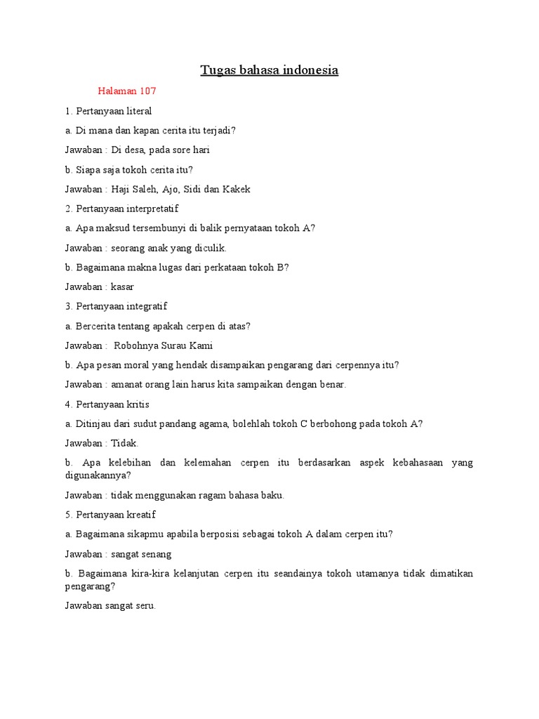 Pertanyaan literal a dimana dan kapan cerita itu terjadi b siapa saja tokoh cerita itu. We did not find results for: Check spelling or type a new query. Maybe you would like to learn more about one of these?