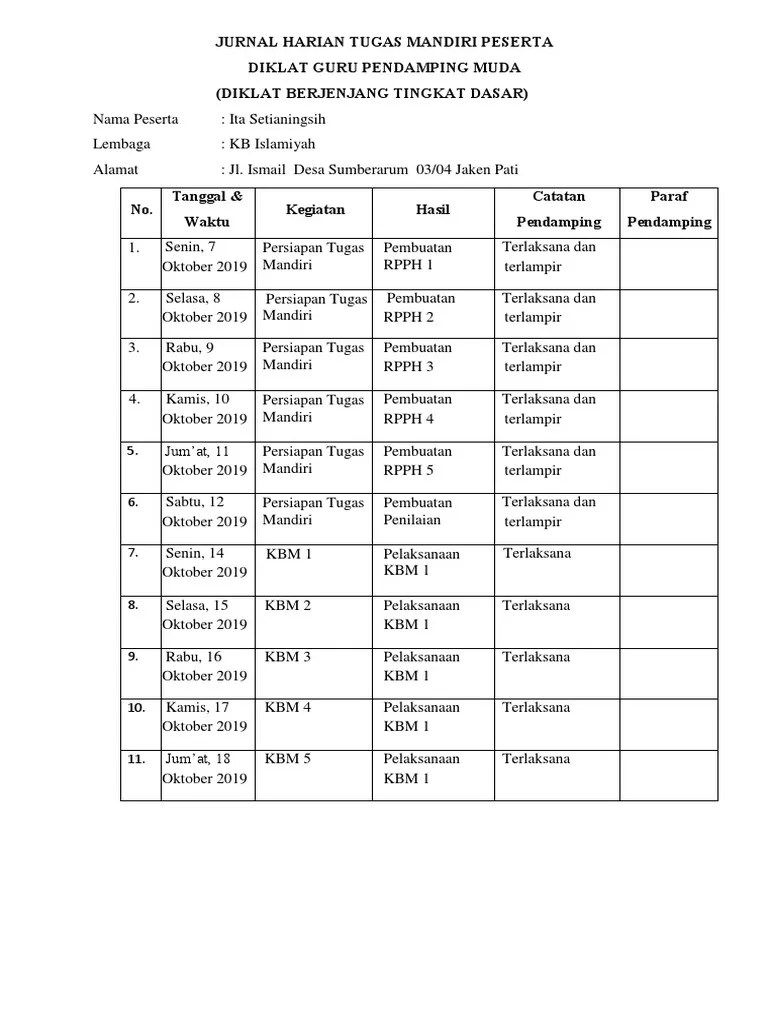 Tugas Mandiri - Contoh Laporan Tugas Mandiri Diklat Lanjut Paud 2018 Nusagates / Key job responsibilities will include:. 196702211992032008 kepala paud kober mandiri mengetahui ketua pelaksana (rida rotul aliyah ,s.pd.i) daftar isi halaaman judul. Panduan tugas mandiri pelatihan calon pelatih (pcp) diklat berjenjang tingkat dasar oleh: Pelaksanaan tugas mandiri juga dilakukan pada saat kbm berlangsung dari hari senin sampai dengan jumat, sejak pukul 07.45 sampai dengan 14.30. Ali nugraha narasumber kementerian pendidikan dan kebudayaan republik indonesia direktorat jenderal guru dan tenaga kependidikan direktorat guru dan tenaga kependidikan paud 2020 biodata narsum nama: Jabung mandiri lampung timur lembar pengesahan laporan tugas mandiri diklat berjenjang tingkat dasar bagi pendidik paud disusun oleh erwin dwi rahmawati diajukan sebagai persyaratan kelulusan diklat berjenjang tingkat dasar jabung, 27 desember 2016 pembimbing disetujui pendamping suparmi, s.pd.