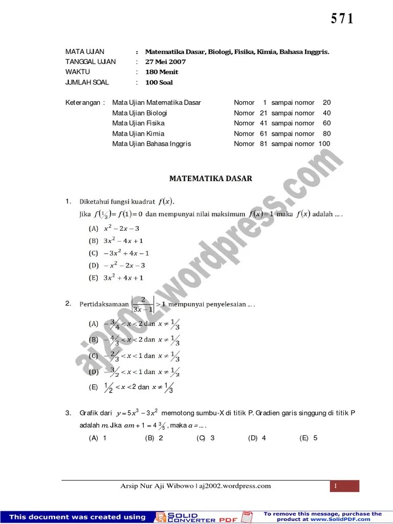 Dalam materi saintek materinya seperti matematika dasar biologi bahasa inggris fisika dan kimia. O matematika dasar o biologi o kimia o fisika. A dan b dan f(1) = 2, maka f(2014) = … Latihan soal biologi um undip . Apakah anda sudah mempersiapkan diri menghadapi ujian masuk undip 2015. Akademik (matematika saintek, fisika, kimia dan biologi). Naskah soal utul ugm saintek 2014. Matematika dasar, biologi, fisika, kimia, bahasa inggris. Soal dan pembahasan um undip. Di buku ini juga terdapat total 10 paket soal um undip, yang terdiri dari. Selain menggunakan jalur snmptn, dan sbmptn untuk masuk . Pada kesempatan tulisan ini, saya akan membagikan soal dan pembahasan matematika dasar ujian masuk uundip (universitas diponegoro) tahun 2014 . Kumpulan soal um (ujian mandiri) terbaik untuk mengikuti jalur seleksi um di universitas diponegoro.